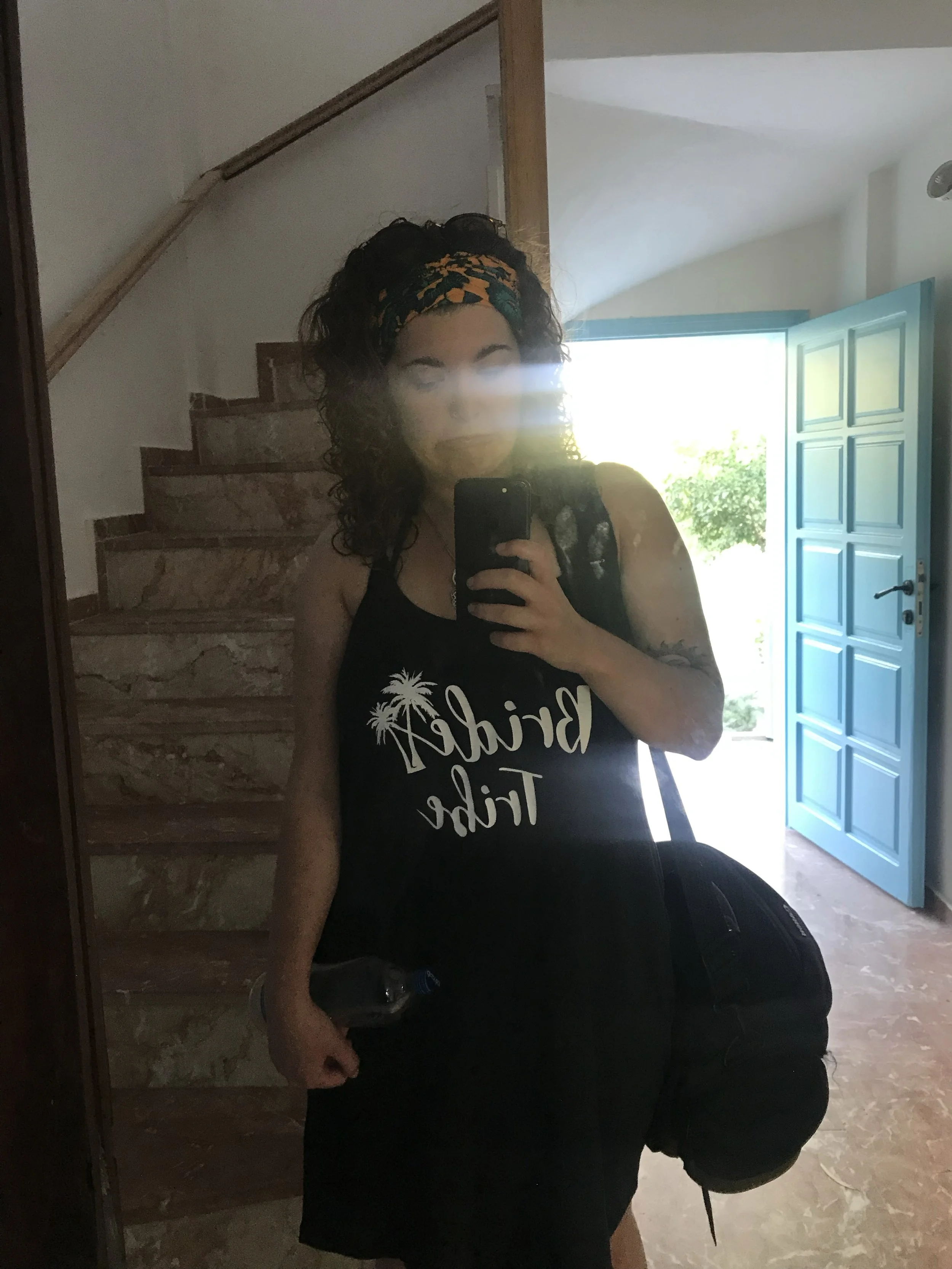 And just to prove I was really in the thick of it, here’s a shot of me in my “Bride Tribe” dress, camera kit over my shoulder, ready to capture the chaos. Part of the crew, but always with a lens in hand.